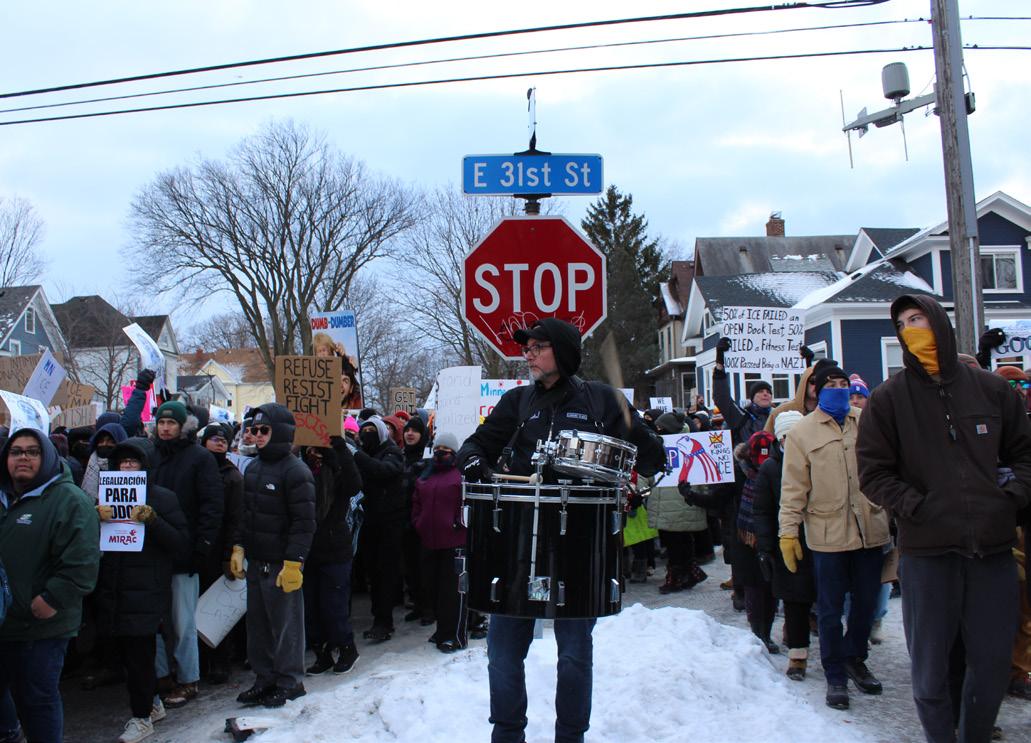 Such was the message of everyone who marched to commemorate Good’s life, and those who balanced their bodies outside of second-floor windows, holding signs in support of their immigrant neighbors. It was the message beaten loudly into the drums of musicians who lugged around their heavy equipment to help keep the beat. “Say it loud, say it clear: Immigrants are welcome here.”