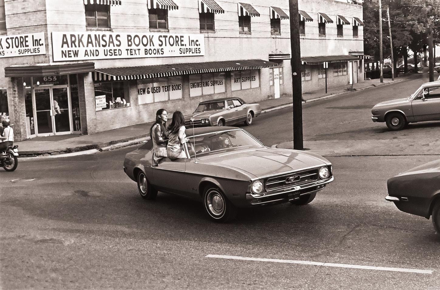 1. “Everyone seems to love this photo as it just oozes ‘good times.’ I love the Mustang, which is the first thing that catches my attention. Then I notice the girls hanging out of the window as the car turns onto Dickson Street. Initially, Andrew wasn’t very proud of this photo. However, after sitting with it he began to connect with it more and more. Mostly, Andrew enjoyed the design elements, like the telephone pole that the cars are ‘rotating around like orbital bodies.’ Andrew was always thinking about space.”