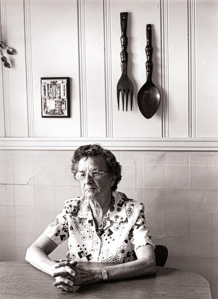 3. “I love the design of this seemingly simple portrait of a woman born in 1903 in her 70s in 1975. The sparse and simple decorations on the wall, the cracks and stains on the wall of her kitchen behind her echoed in the cracks of her skin. This woman, Andrew’s grandmother-in-law, has a face characterized by a hard life surviving the Depression, two world wars and the requirements of Southern domestic life in the 20th century.”