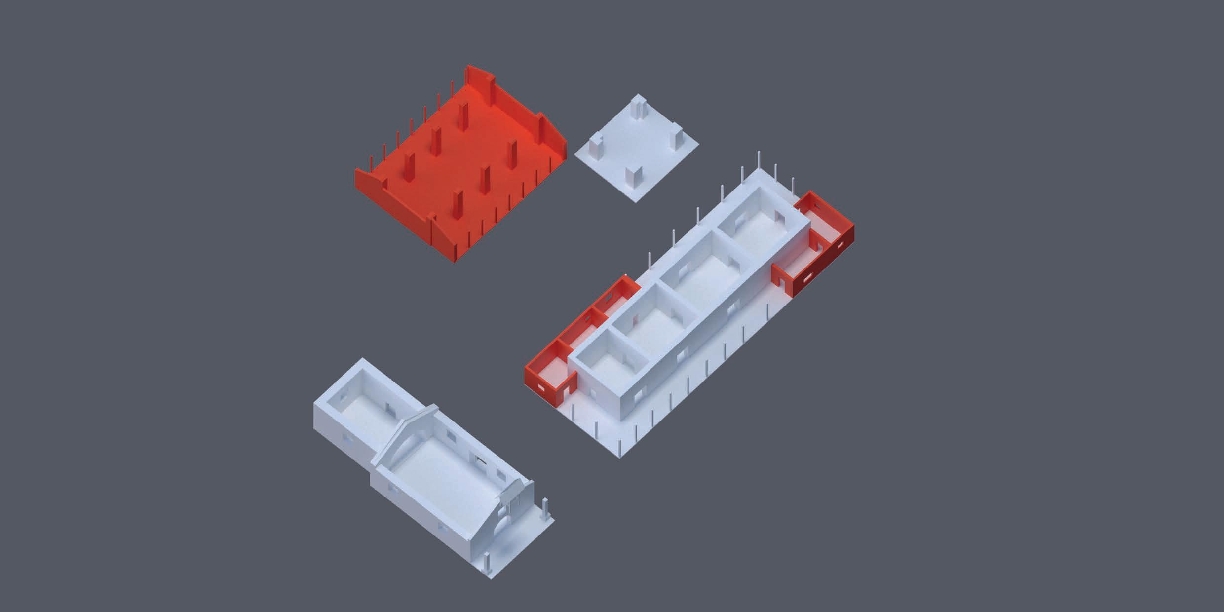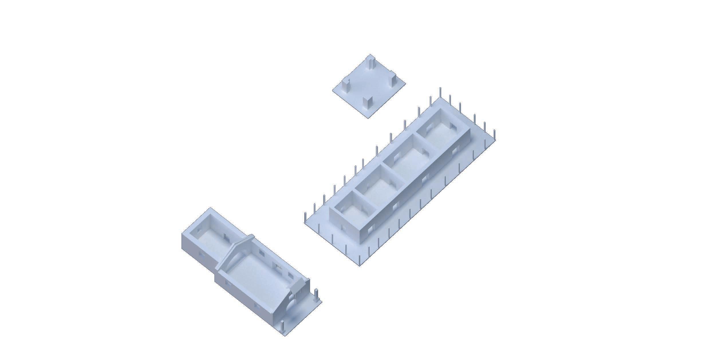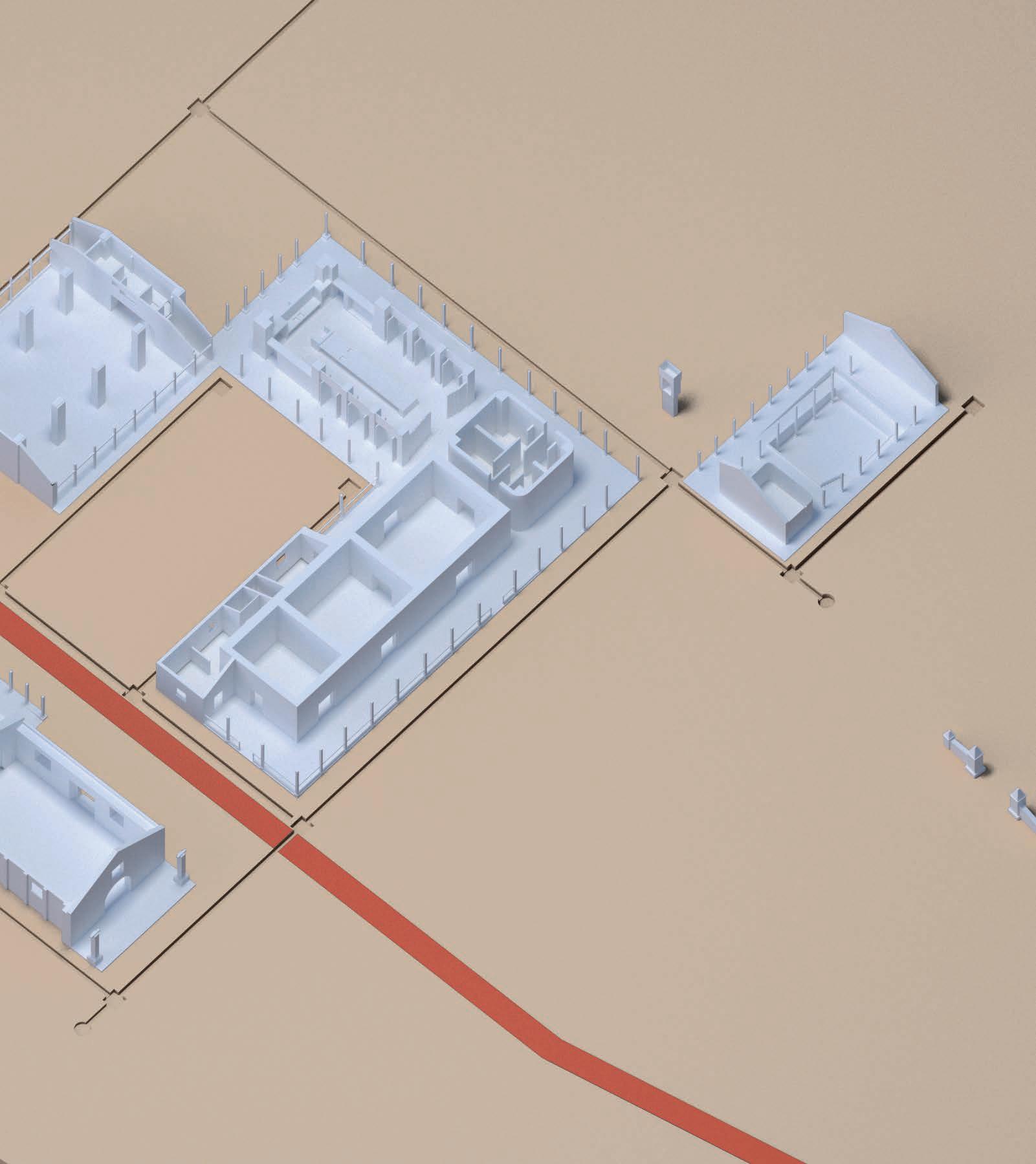 [Figure 64] The new buildings: on the ashes of the sugar mill, the new artists dormitories emerge. Graphic by the author, 2022