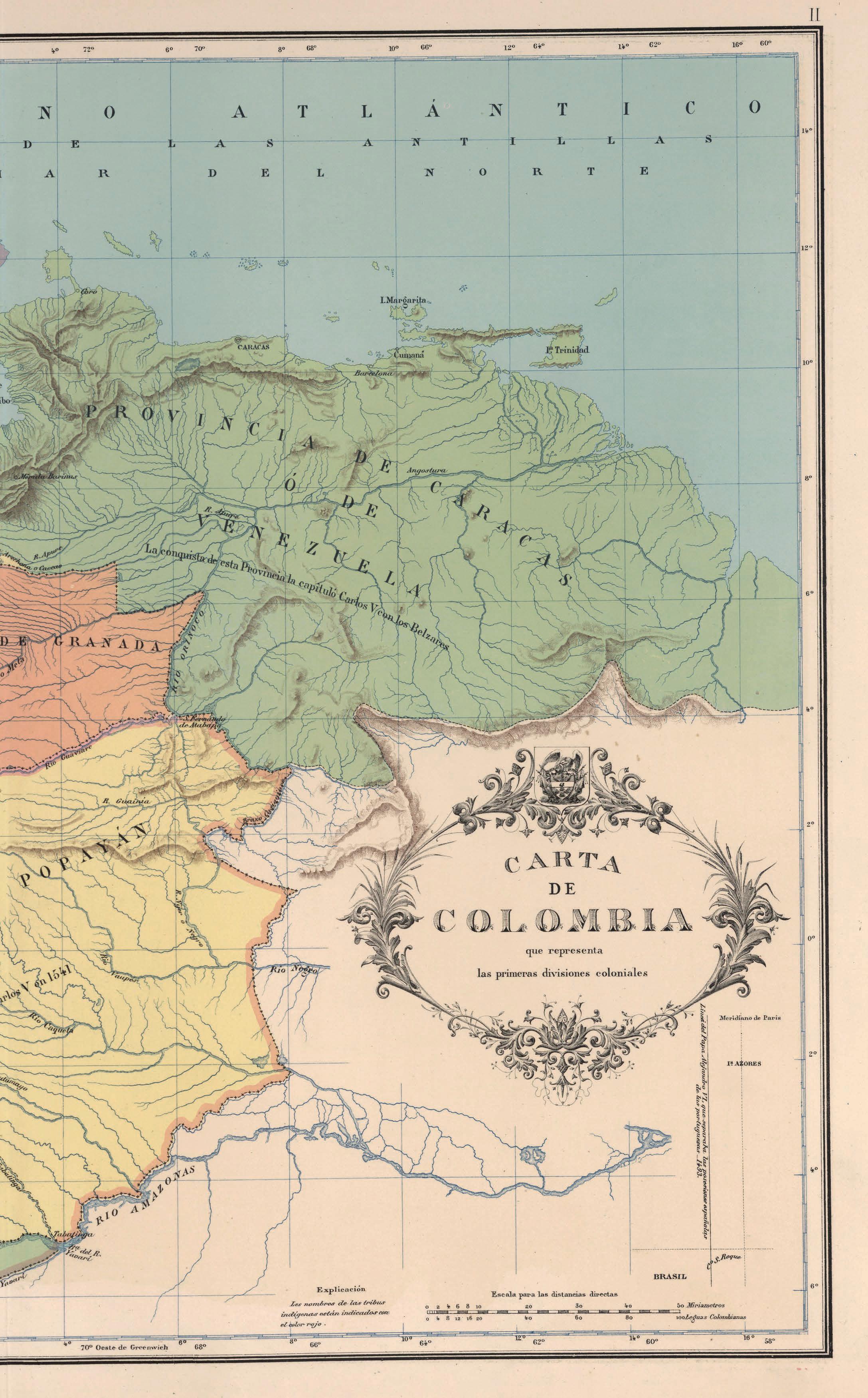 Pages 12-13, [figure 3] Map of the territorial divisions in the region that comprises today’s Colombia. Drawing by Agustin Codazzi, 1890. Historical Archive Agustin Codazzi Institute, Colombia.