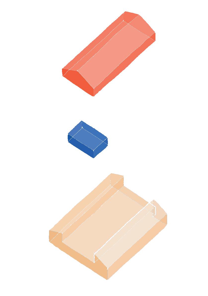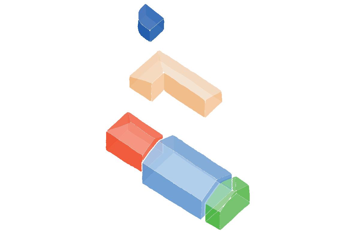 the volume, to provide sanitary services and storage. These are also required as service spaces that provide logistical support for the proper functioning of the other adjacent areas dedicated to artistic, academic and recreational activities.