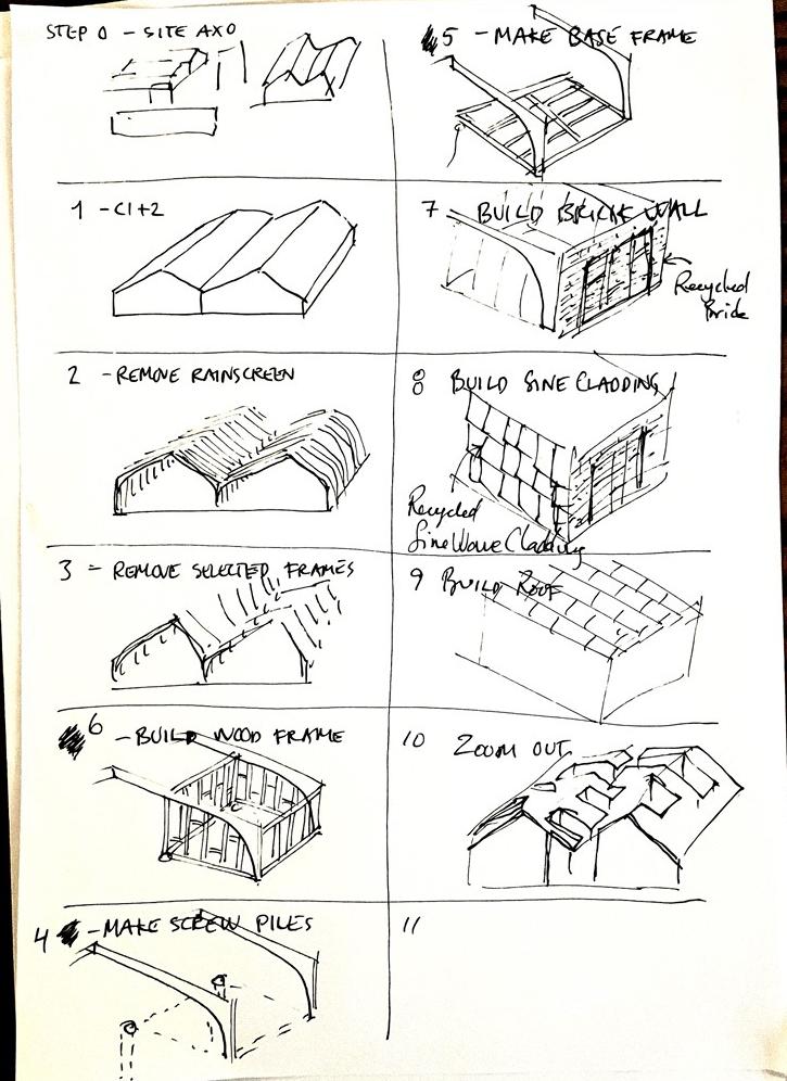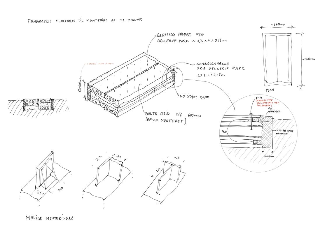 Tak til Realdania og Thomas Waras Brogren for at muliggøre, at vi kunne udvikle og øve ’den omvendte design proces’, hvor vi designer med genbrug af byggematerialer, der allerede er på matriklen.