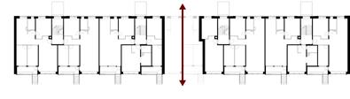 Afskåret dæk for at skabe rektangulære lejligheder sammensat til kvadratiske enheder.