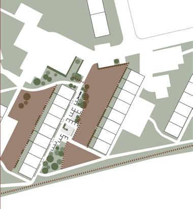 Through a more fluid planning with greenery as the foundation, the space in-between the buildings can be activated. The cut grass is exchanged for a variety of species and connections through the area established to encourage movement through instead of around.