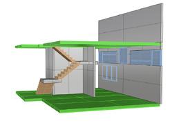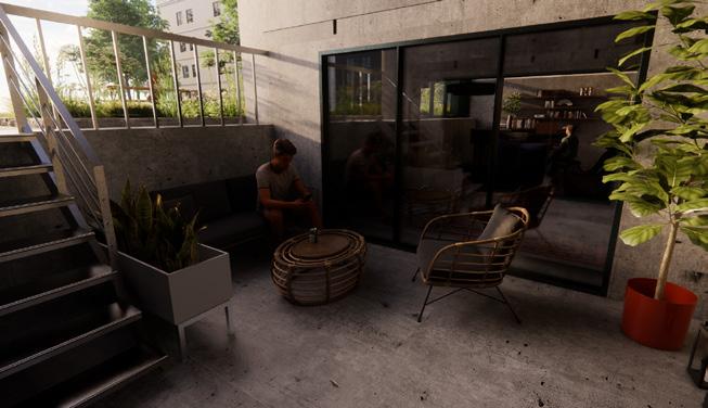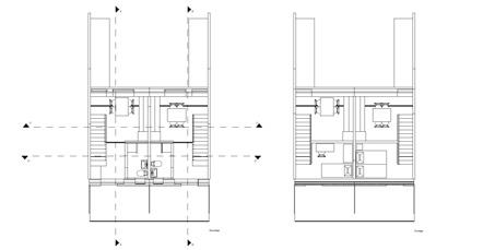 1st floor: Studios/student housing. Circulation on the walkway. 2nd floor: Merged with the 3rd floor. Two-story homes and double-height rooms (see section).