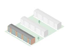 The buildings were constructed between 1963 and 1969 and are typical of the period, built using standardized, prefabricated concrete elements. Additionally, the residential area underwent extensive renovations in the late 1990s.