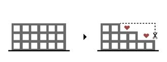Creating an open corner or ground floor. Changing the materiality, window size or height on the ground floor indicates urbanity and public space. The visual connection increases the sense of safety.