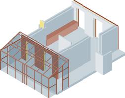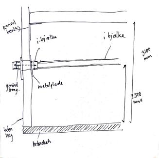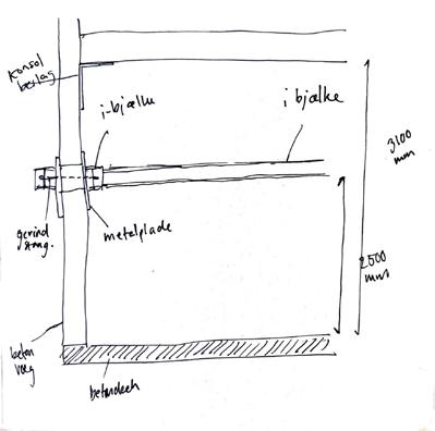 Nederst skitser ud fra den bærende konstruktion blokken.