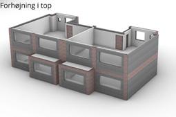 Forhøjelse med mursten i toppen skaber et tungt bælte, men leger med højderne af betonelementerne.
