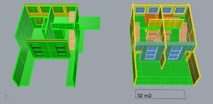 Fig. 13: Detaljeskitser af samlinger / Detail sketches of joints Fig. 14: Antal kvadratmeter vinduer brugt i en bolig /
