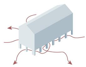 Removing the whole ground floor to raise the building on pillars. There is flow underneath and connects courtyards both physically and visually. Under the buildings there are possibilities for activities and activation.