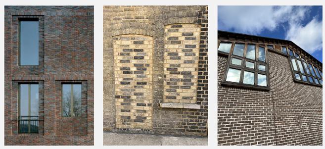 Increasing height with bricks at the top creates a heavy belt but plays with the heights of the concrete elements. Increasing height with bricks under the concrete elements creates a lighter expression. and runs like a plinth or a foot for the concrete element, but the heights of the concrete are expressed at the bottom of any door openings.
