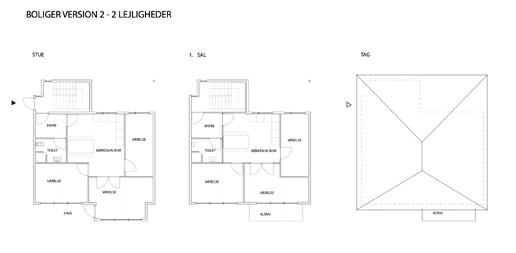 2. sal: sammenlægges med 3. sal. Boliger i 2 plan og dobbelthøje rum