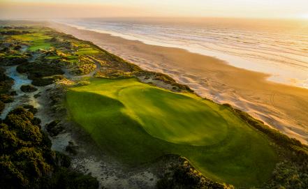 werd in twee jaar tijd omgevormd tot de natuurlijk ogende duinen, bluffs en punchbowls die dit visuele meesterwerk kenmerken. Ironisch genoeg zijn er nergens ‘officiële’ bunkers op de baan. In plaats daarvan gaan de weelderige greens en fairways naadloos over in witte zandvlakten. Je kan je club dus overal aan de grond zetten.