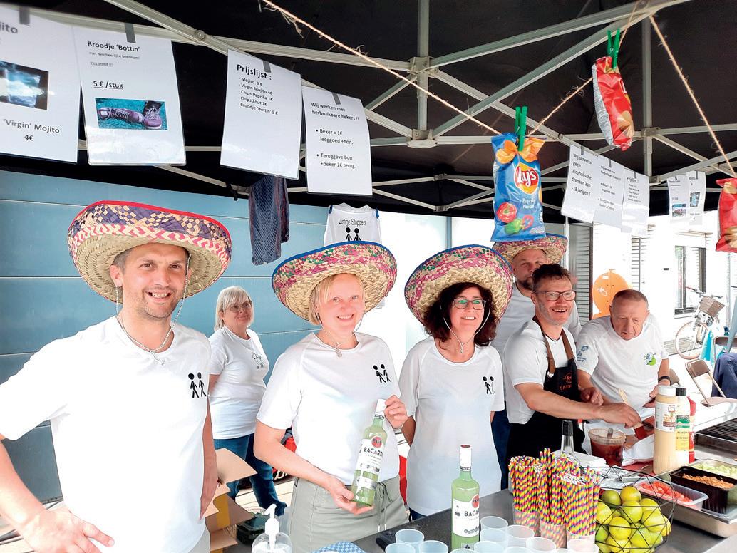 De Lustige Stappers Lebbeke promoten hun wandelactiviteiten tijdens de lokale avondmarkt.