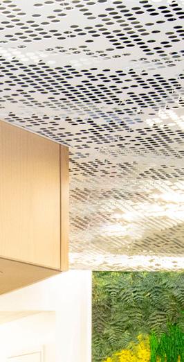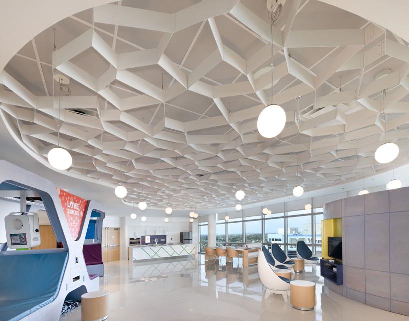 Creating an aesthetically pleasing web pattern throughout this space, Joe DiMaggio Children’s Hospital showcases Atmosphera® Pulse modules. These modules provide diverse shapes and forms that can fill ceilings of any size and configuration. Inspired by the natural, mathematical tessellated patterns found in nature, Pulse offers a seamless, continuous, and unique design for the hospital’s lobby.