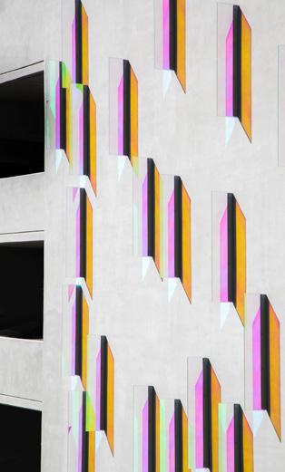 Arktura designed and fabricated this dynamic, dichroic-glass, fin-based sculptural wall in collaboration with media artist Refik Anadol. It brings character to the parking structure at Culver City’s C3 development, complementing and enhancing the connected Gensler designed space, with colorful, Southern California sun-fueled projected refractions that evolve throughout the day.