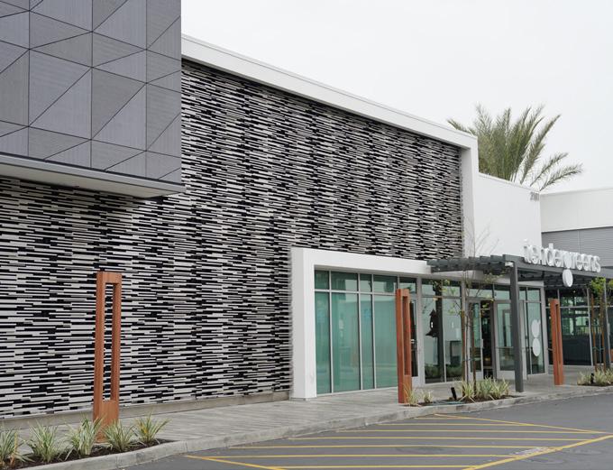 Retail Design Collaborative (RDC) worked with Arktura to develop an exterior stainless steel rain-screen facade for 2171 Rosecrans. Starting with Arktura’s existing modular exterior system - Secare® - the modules were rotated 90 degrees to create horizontal movement instead of vertical. Each module was designed to accommodate the facades’ unique conditions. Secare gave texture and dimensional impact to the facade and was used here to add to the textural palette of exterior finishes mixed-use development project.