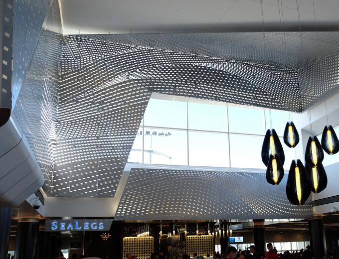 Arktura worked closely in a design and fabrication partnership with Westfield and Akar Studios to create a graphic and engaging effect in the newly imagined T-2 at LAX. Graphic Perf® interior custom panels are poetically woven throughout the terminal to create a vibrant installation and impact. The design makeover has defined the LAX experience. It elevates travelers’ expectations in creating a genuinely world-class airport environment.