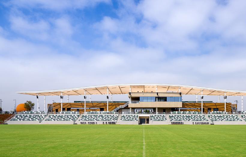 Delivering comfort and aesthetics, these dynamically tailored canopies unify this expansive multi-sport complex at Orange County’s Great Park.