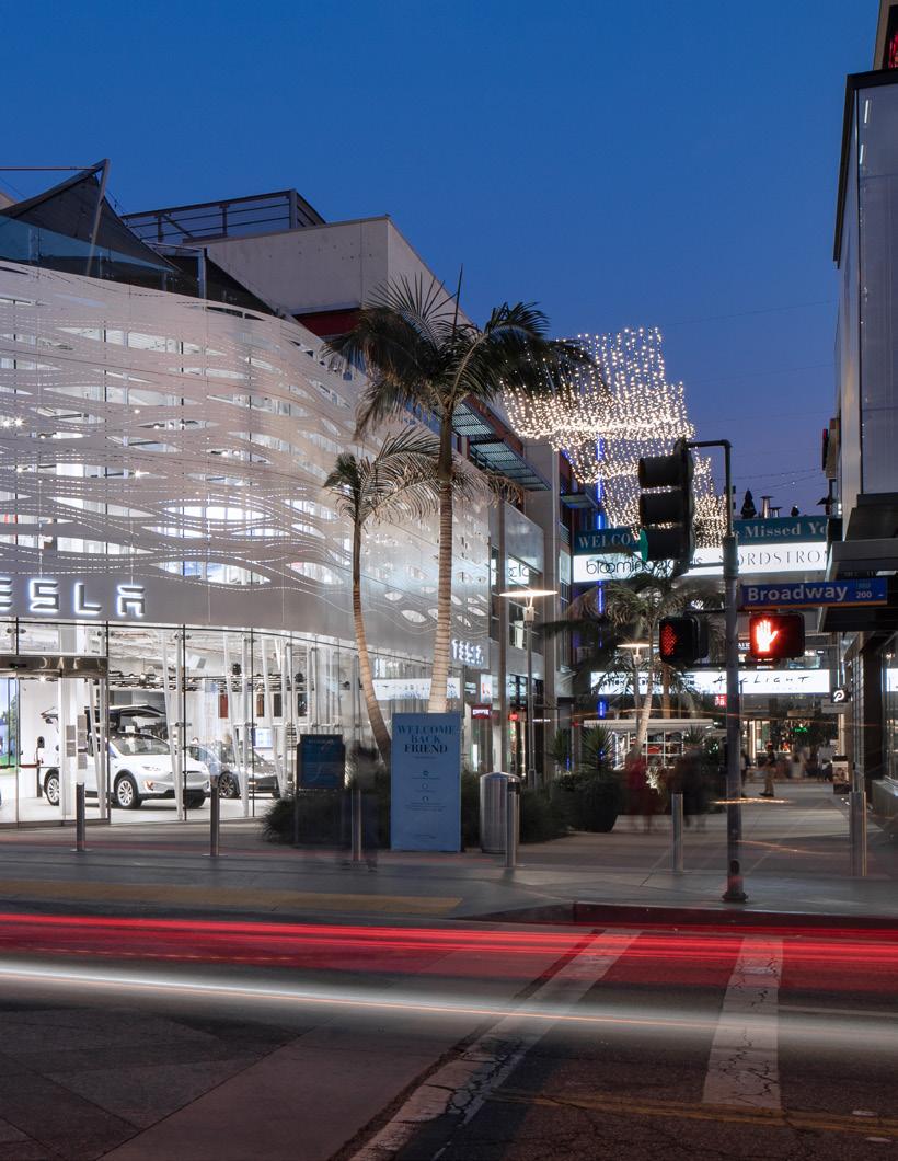 At the crossroad of the Third Street Promenade and Santa Monica Place, with Michael W. Folonis Architects and Arktura’s Solution Studio®’s guidance, Tesla developed a facade inspired by the namesake of the company, Nikola Tesla, and magnetic flux diagrams to wrap the exterior facade of their flagship auto showroom. Translating the inspired brief, Arktura utilized proprietary software to develop the complex curved custom exterior Graphic Perf® system into a synergetic graphic form to capture the relationship between magnetic flux and electron decay. The resulting facade is visually impactful and filters heat, sunlight, and serves as a rain shield while representing the electric propulsion’s linear energy release.