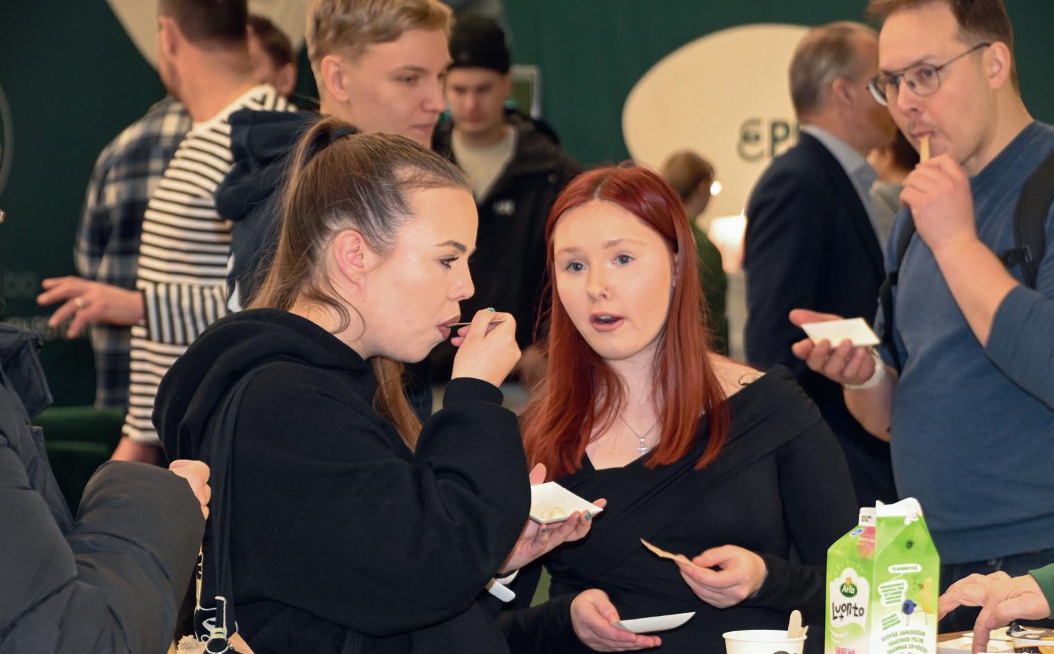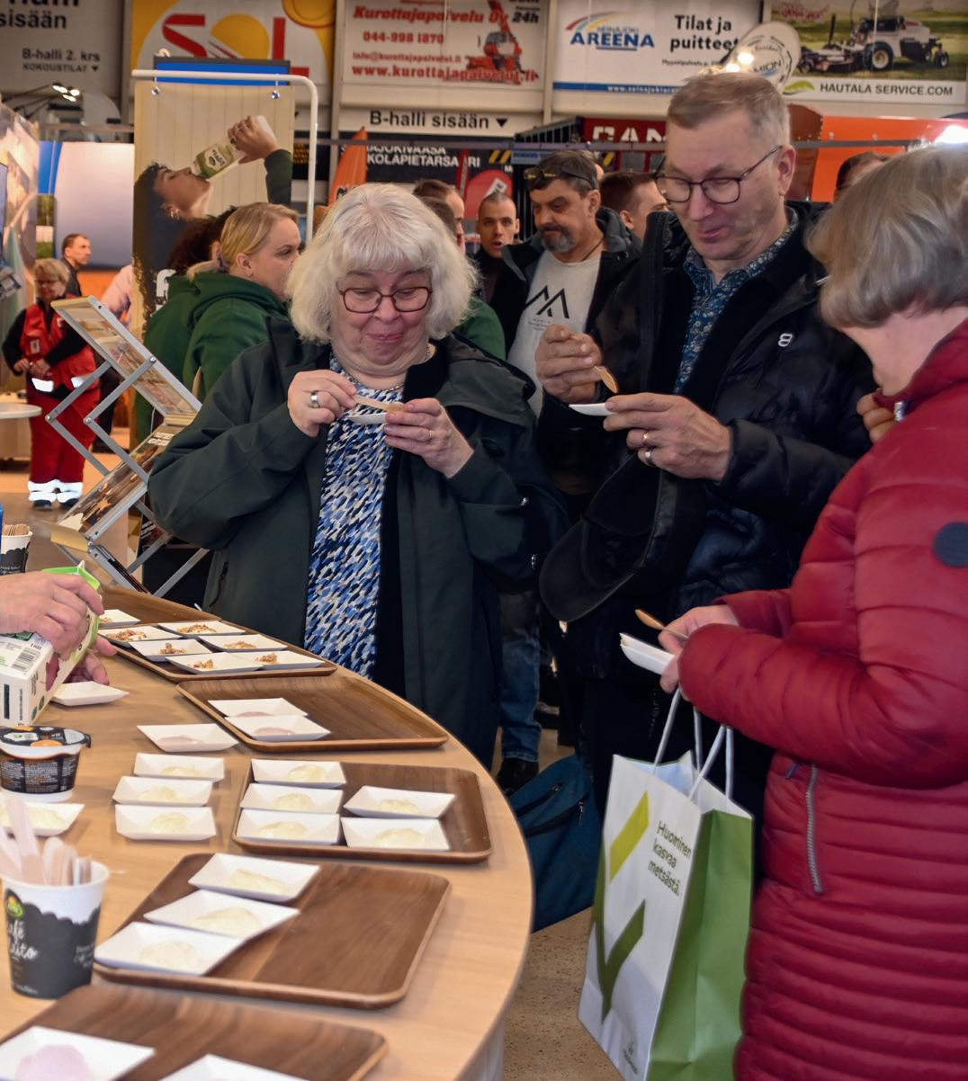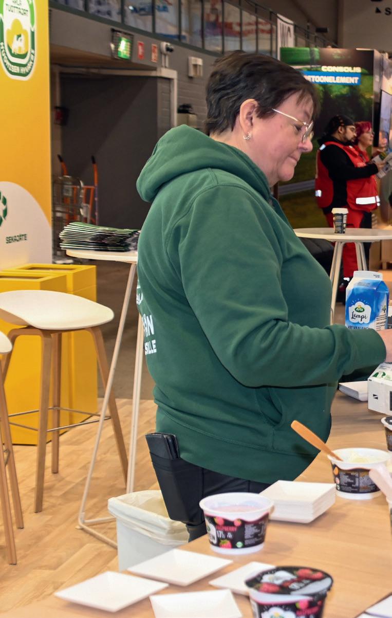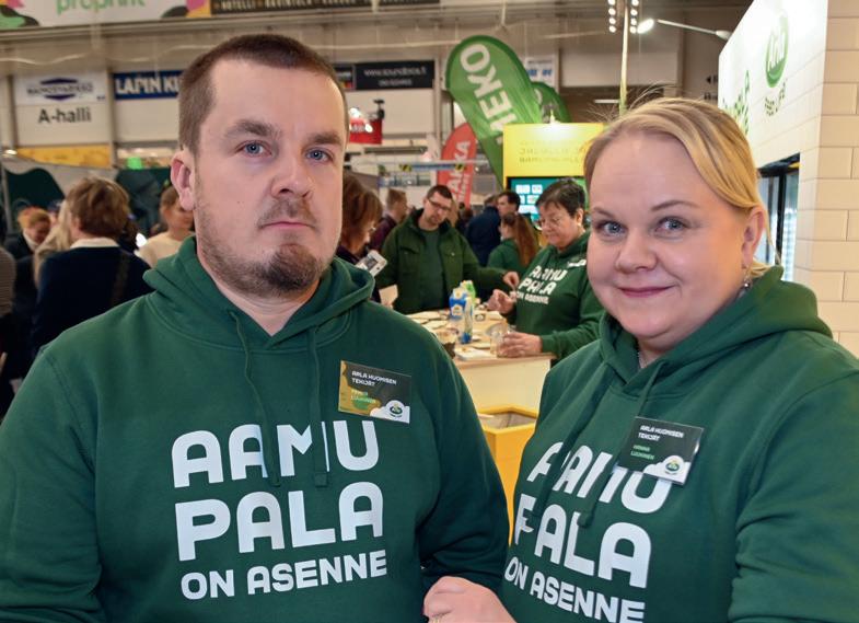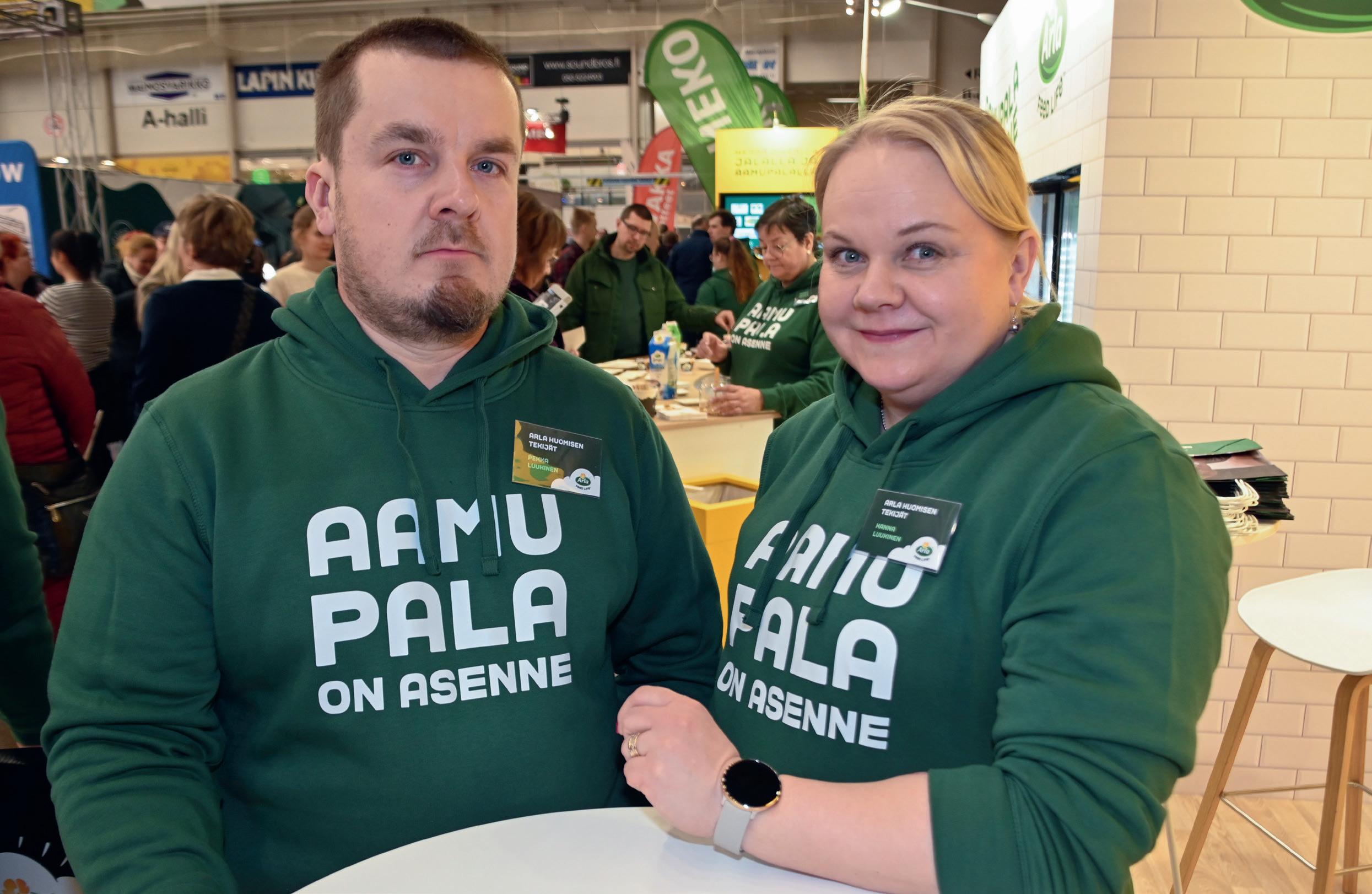 Arla Huomisen Tekijät -ryhmässä mukana olevat liminkalaiset Hanna ja Pekka Luukinen olivat Sarkamessuilla ensimmäistä kertaa. Luukiset jakoivat messuosastolla kävijöille Arla-tuotteita.