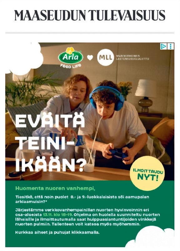 Arla ja MLL järjestivät 13.11. kaikille avoimen verkkovanhempainillan, josta kerrottiin myös Maaseudun Tulevaisuuden lukijoille.