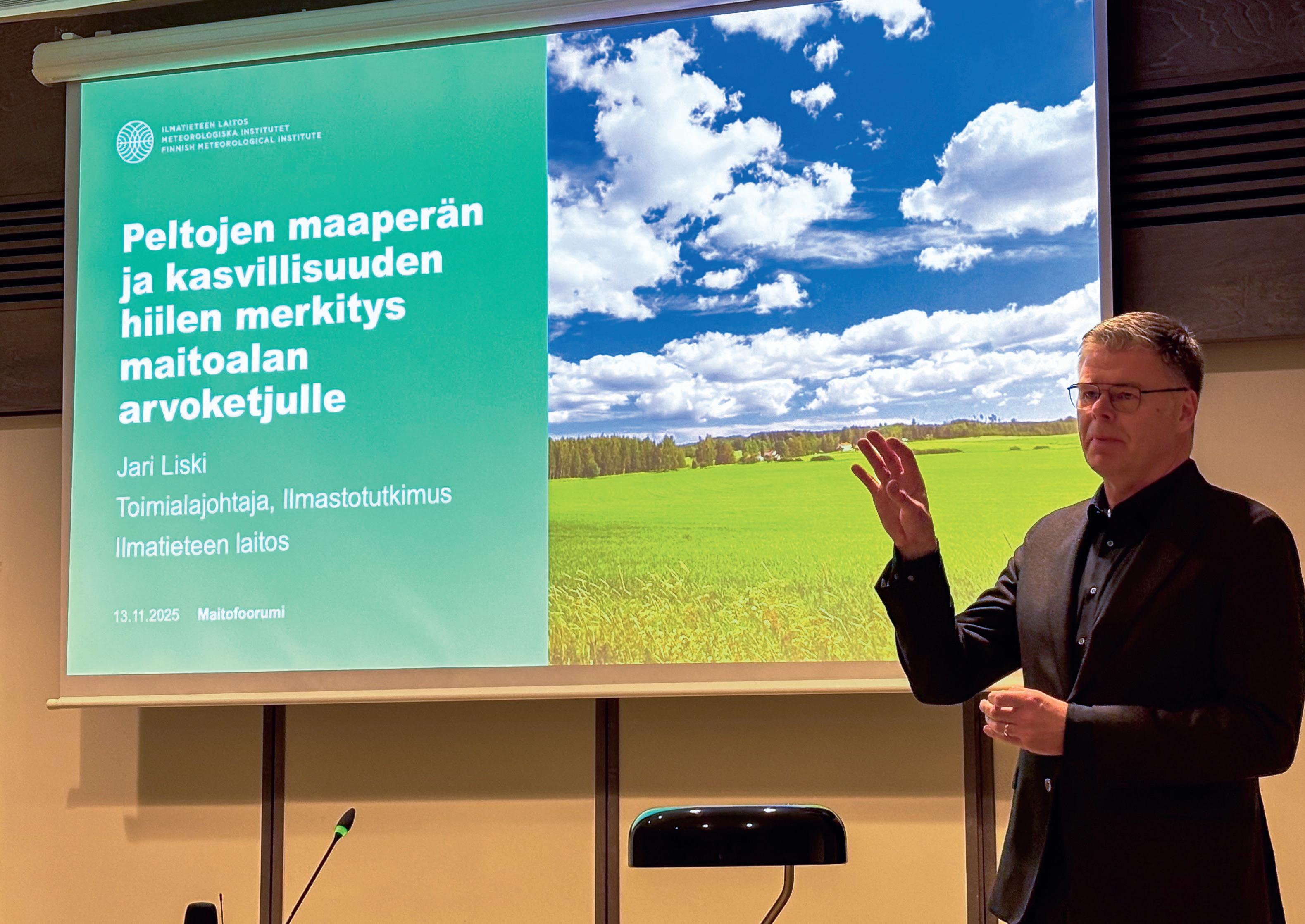 8 Tohtori Kyösti Arovuori: ”Maidontuotannon hiilineutraali tulevaisuus vaatii investointeja, innovaatioita ja yhteistä tahtoa koko ketjulta”.