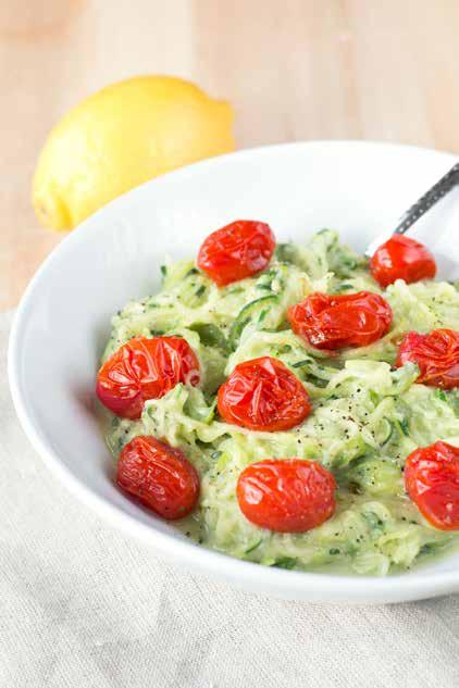 ROASTED CHERRY TOMATO, BASIL, & CREAMY LEMON AVOCADO ZUCCHINI