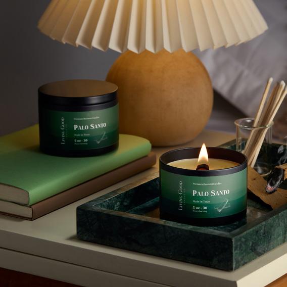 Living Good’s candles are handpoured in Houston, crafted with high-quality beeswax and fragrance, and boast a 30 to 90-hour burn time, depending on the size. Their Palo Santo scent is perfect year-round, with citrus notes merging with earthy, woodsy charm. As the beeswax purifies the air, the essence of Palo Santo cleanses the senses, infusing an ambiance of bold tranquility.