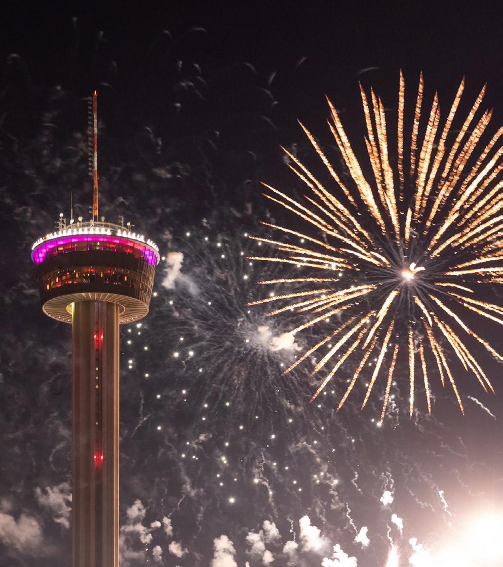 San Antonio invites you to a free yearly celebration hosted by their Parks Foundation to watch fireworks and enjoy live music on December 31 at Hemisfair Park. Past events welcomed over 70,000 people of all ages with rides, food, carnival games, and a familyfriendly atmosphere. Revelers often end the party draped in beads and beaming from behind their glittering, novelty New Year’s Eve glasses. Buy a ticket to watch fireworks up close from the top of the Tower of the Americas. Party starts at 6 PM. Hemisfair.org