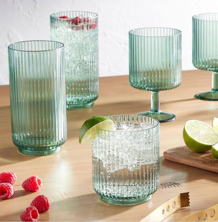 A retro design that’s made a major comeback, this Mesa Green Ribbed Acrylic Stackable Drinkware Collection is an on-trend way to enjoy your favorite beverages. Made of shatterproof acrylic, these highball, double old-fashioned, and goblet glasses are safe for the dishwasher and stackable for carefree cleaning and storing.