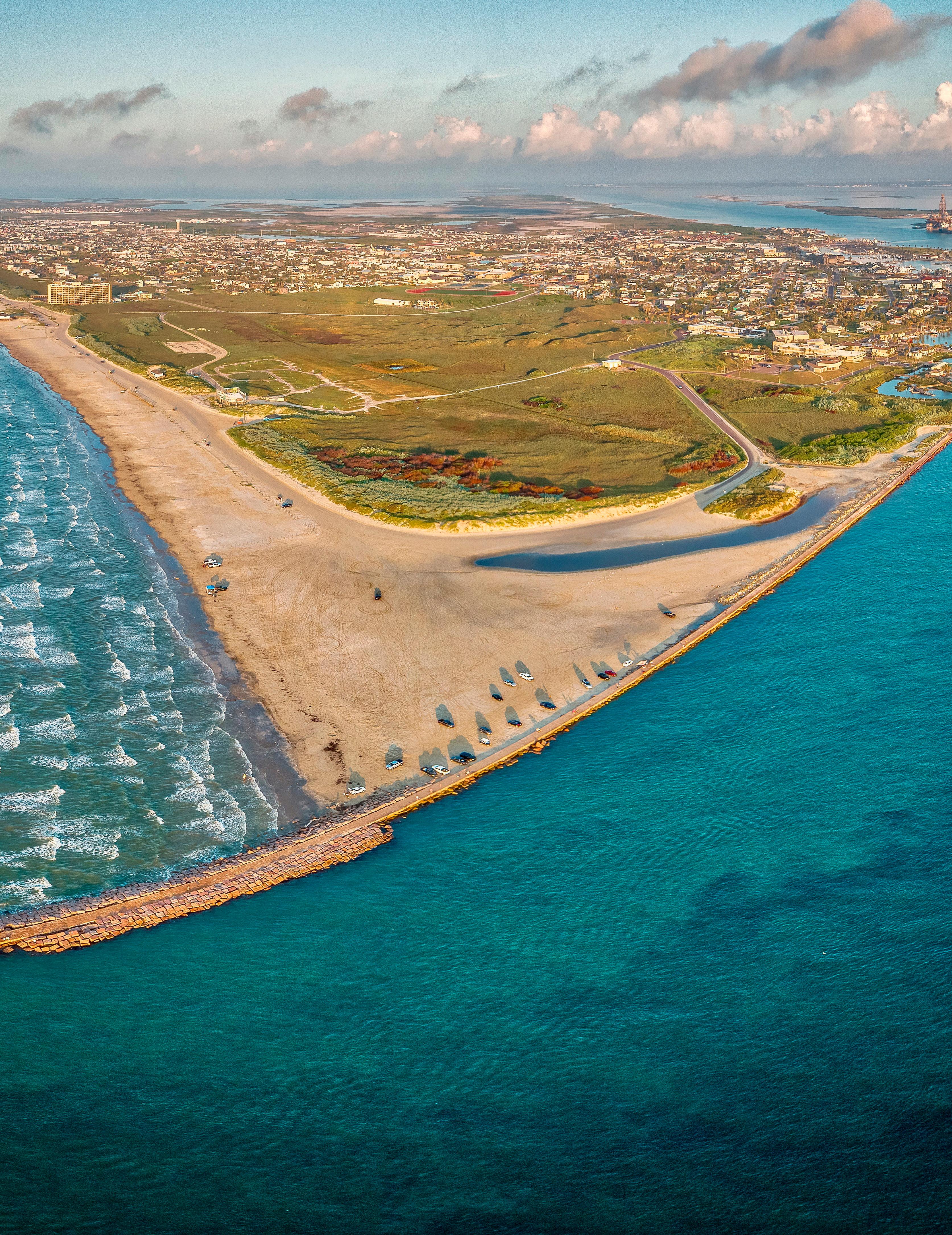 Want waves, seafood, and a laid-back vibe? Port A delivers. Just a short ferry ride from Corpus Christi, this beach town is one of the most approachable (and family-friendly) spots on the Texas coast. Rent a golf cart, cruise the sand, enjoy fresh Gulf shrimp, and soak up the relaxed coastal rhythm. It’s perfect for a weekend of zero pressure and maximum sunshine.