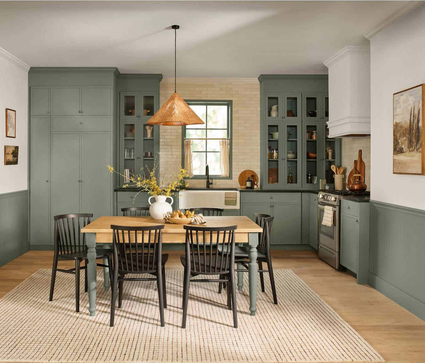 Hidden Gem leads the palette with its smoky blend of blue and green, bringing depth without heaviness. This versatile shade feels grounded yet energizing, making it ideal for spaces that need a touch of character—think built-ins, bedrooms, or a welcoming front door. Its refined complexity makes a room feel curated but never fussy.
