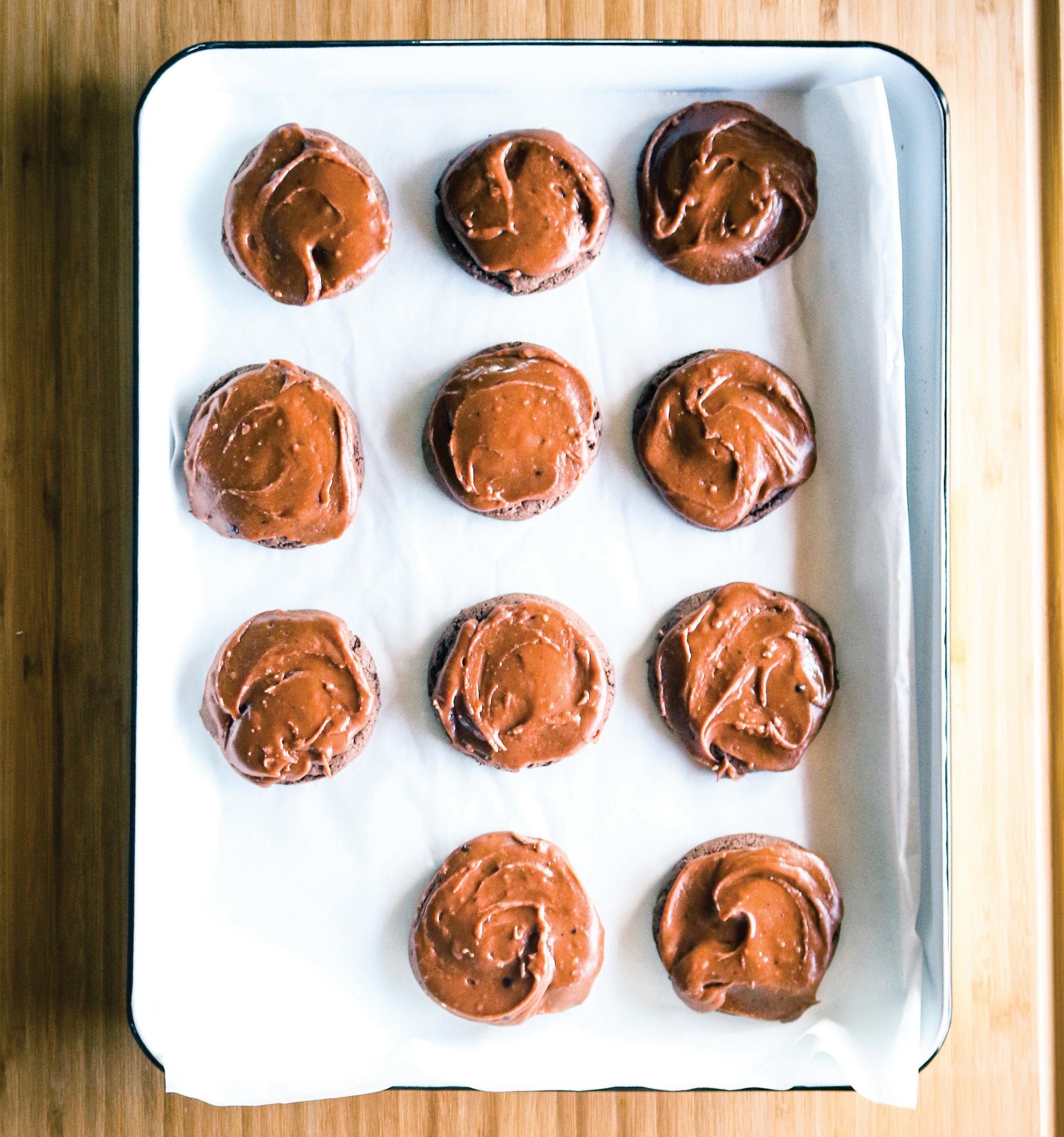 INSTRUCTIONS: PREHEAT oven to 350˚F and line cookie sheet with parchment paper. In a large bowl, mix together the cake mix, eggs, and oil until smooth. Scoop out batter balls and place them onto the cookie sheet about 2 inches apart. Bake 10 minutes. Remove from oven and let cool. IN A MEDIUM SAUCEPAN, combine butter, cocoa powder, and milk over medium heat. Whisk together until combined. Remove from heat and slowly stir in powdered sugar until smooth. Drop a spoonful of icing on each cookie. Allow the icing to harden before enjoying.