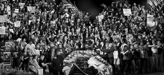 JR displays his artworks in open public locations like walls or buildings, capturing the attention of passersby and providing a visually immersive experience Furthermore, JR carefully picks the settings for his works, frequently selecting areas that are particularly pertinent to the issue of gun violence, ensuring that it connects with the local population and sparks important community debates A significant feature portrayed in the mural is the visual irony of 250 diverse individuals surrounding a table mimicing a debate, ultimately shedding irony on the inefficacy of political discourse in addressing the pervasive issue of gun violence. One of the most important components of the "Inside Out Project" is its collaborative nature JR democratises creative expression by encouraging anyone to engage in its development and distribution This interactive aspect not only allows people to tell their personal stories, but it also promotes a sense of community and solidarity among individuals affected by gun violence. JR uses photography and film to capture the process of creating the installations, providing a record of the project's effect and progress. This record acts as a creative preservation, allowing the artwork to reach a larger audience outside of the museum itself and express the universal message of gun violence and its consequences on a worldwide scale
