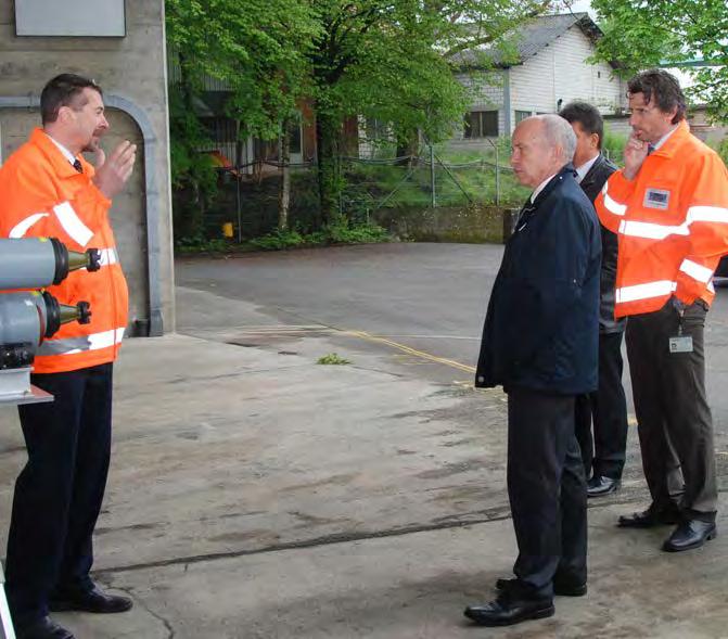 Au fil des années, armasuisse S+T a vu passer de nombreux chefs de département. Parmi eux, l’ancien conseiller fédéral Ueli Maurer, ici en visite à Thoune. L’actuel chef d’armasuisse S+T Thomas Rothacher (veste orange, à droite sur la photo) était lui aussi de la partie, mais il occupait une autre fonction à l’époque.