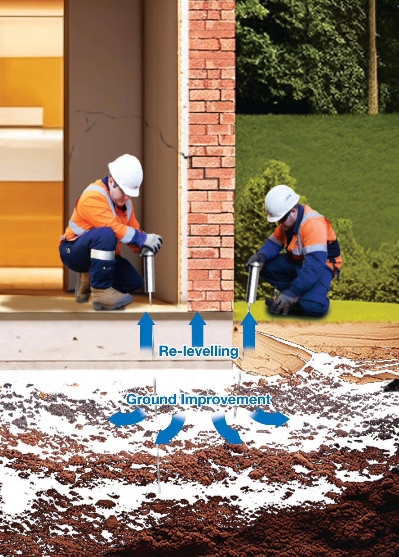 Raise, re-level and strengthen foundations at your client’s property with our non-invasive technology. Weak ground? Cracked Walls? Sinking foors? Scan to see how it works 1800 623 312 or www.mainmark.com Contact us for a FREE quote and expert advice Mainmark Ground Engineering PTY LTD - ABN 51 606 182 503 Fast & Clean Cost Effective Non Disruptive