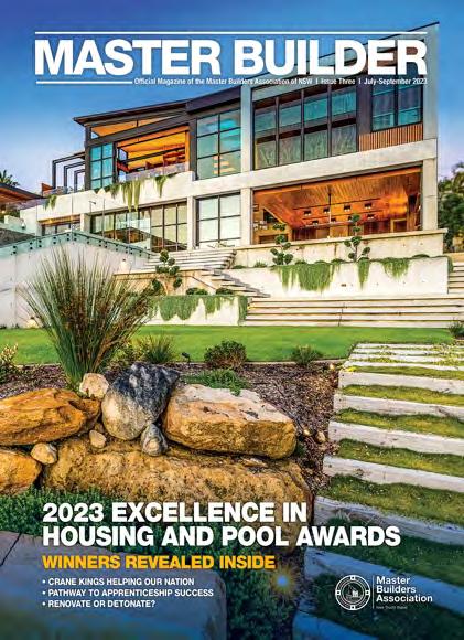 2023 EXCELLENCE IN HOUSING AND POOL AWARDS WINNERS REVEALED INSIDE • NEW INSURANCE REQUIREMENTS NEXT YEAR • PATHWAY TO APPRENTICESHIP SUCCESS • RENOVATE OR DETONATE? MASTER BUILDER Official Magazine of the Master Builders Association of NSW | Issue Three | July-September 2023