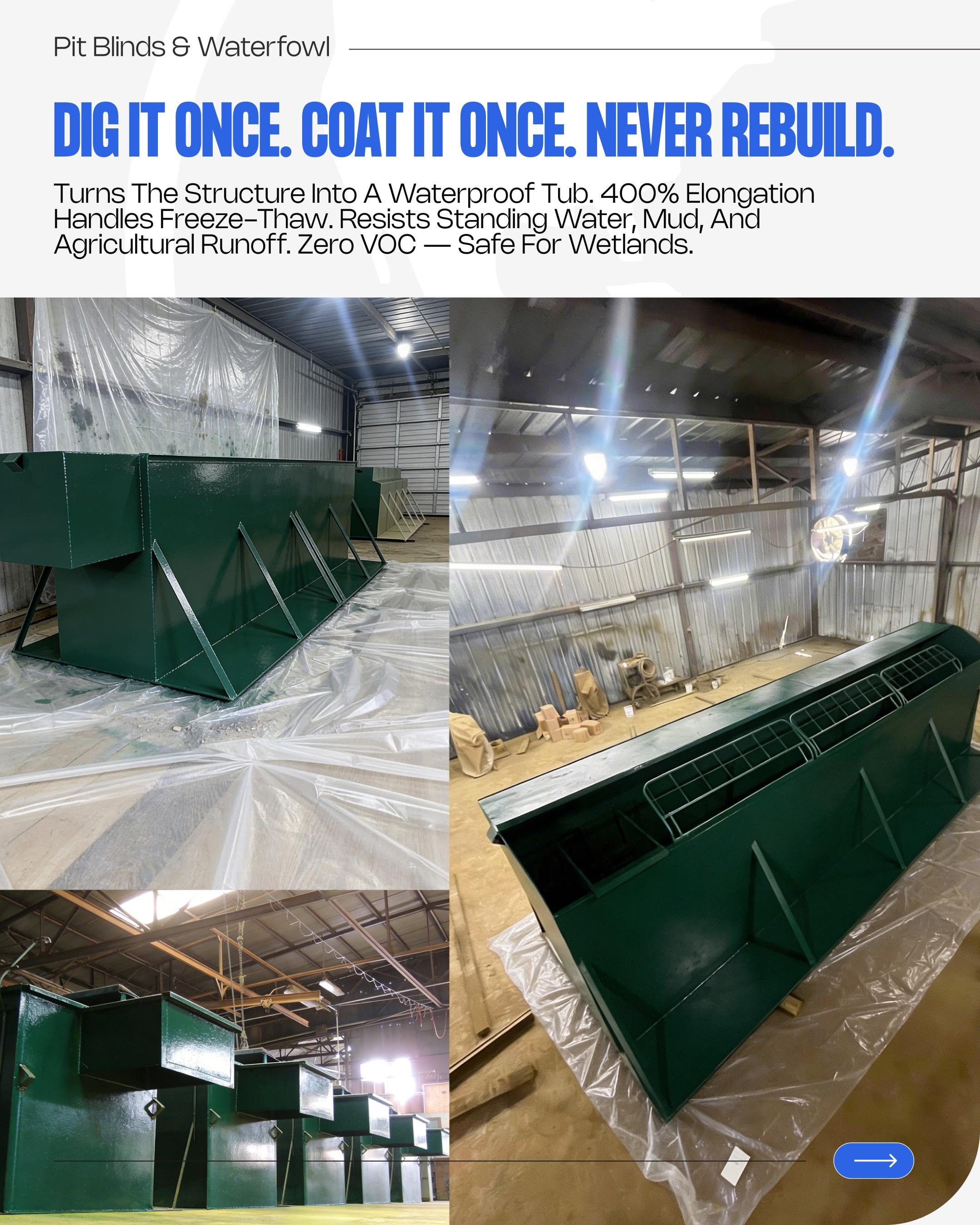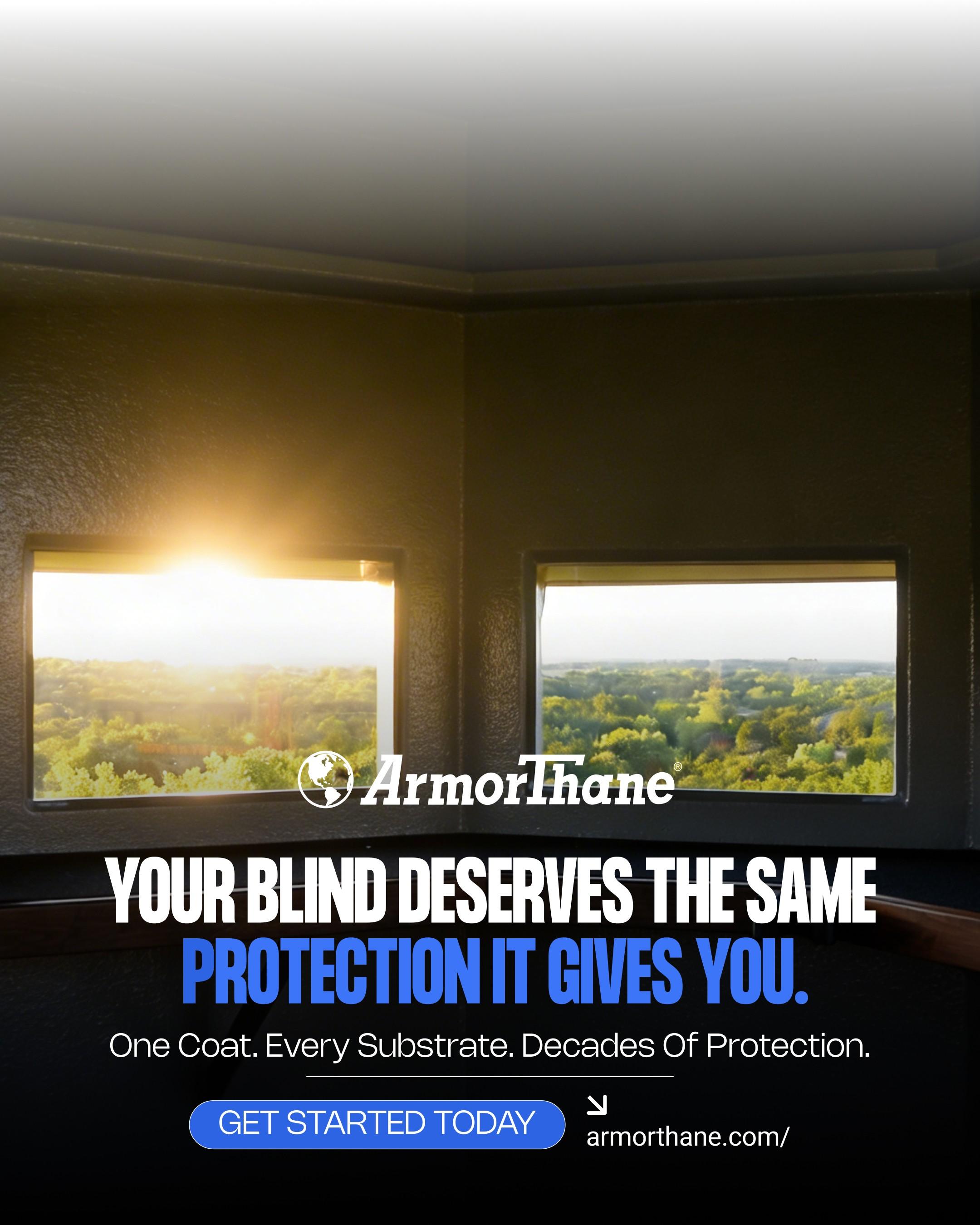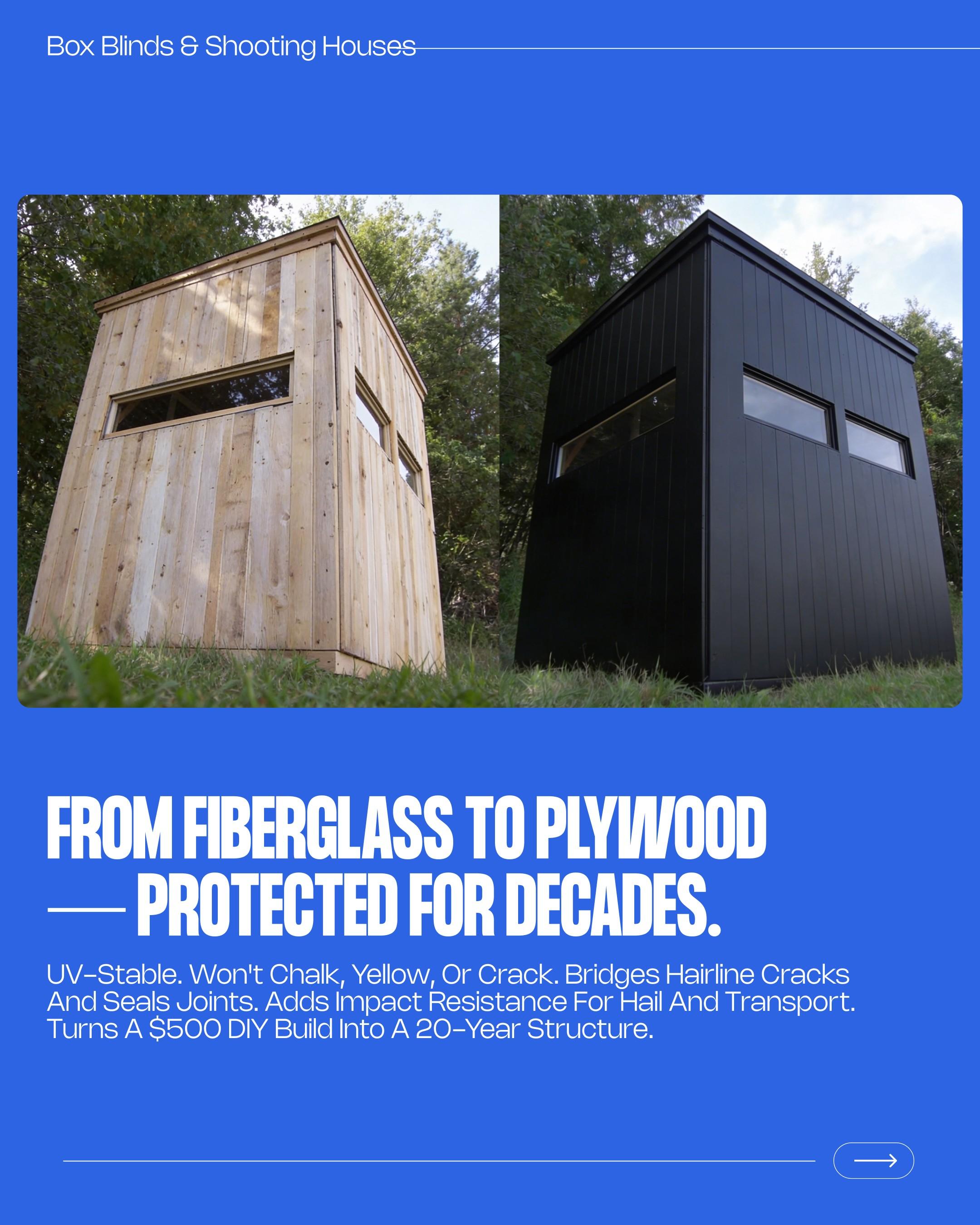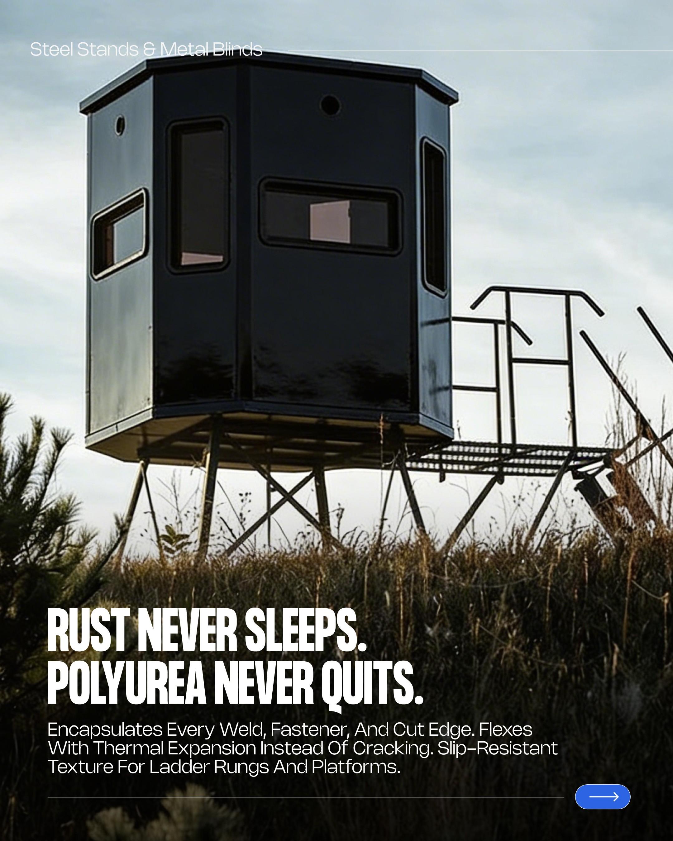 ArmorThane Polyurea Coatings for Hunting Blinds — Gel coat fades, wood rots, steel rusts. One coating fixes all of it. ArmorThane's polyurea bonds to wood, steel, fiberglass & composite — seamless, UV-stable, and built to last 20+ years. Protect box blinds, steel stands, and pit blinds from weather, corrosion, and impact. Get started at armorthane.com