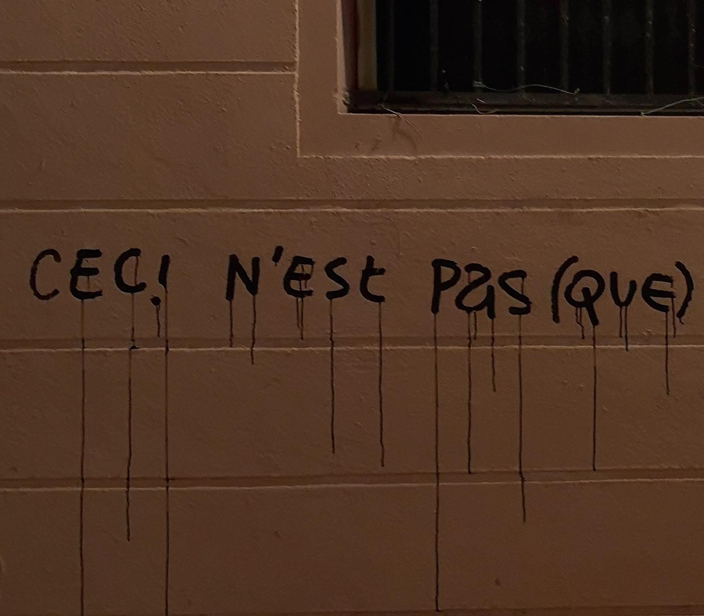 Avec: en couverture: « C’est quoi ton graff ? ».......................................................................Noeil, à Lyon un art premier..................................................................................................Anonyme, à Bruxelles avant tout de l’humour...........................................................................................Anonyme, à Lyon de la clarté.........................................................................................................Inconnu·e, à Bordeaux une façon de se rassurer...........................................................................................Anonyme, à Lyon une information importante...........................................................................................Casper, à Lille un duel repoussé.................................................un·e pote de Casper, toujours à Lille (juste à côté) un retour en enfance...................................................................................................Selor, à Bordeaux des nuits nocturnes..........................................................................................................Tabou, à Lyon un travail d’introspection.......................................................................................Mind fuck, à Lyon un cri du cœur.........................................................................................................Inconnu·e, à Lyon