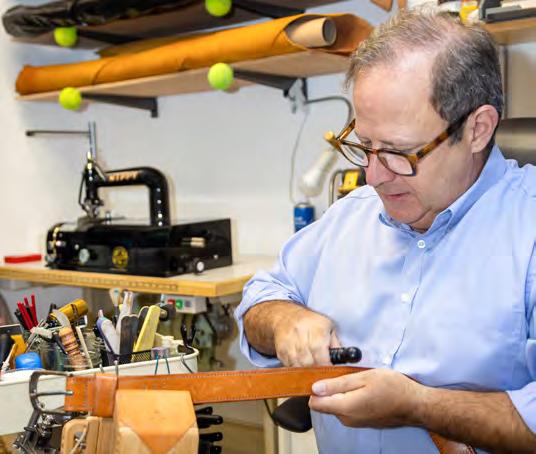 Walk into Alex May’s atelier and you’re instantly confronted with the sights and unmistakable scents of leathercraft. The space – a room in his Discovery Bay flat – is floor-toceiling with tools, scraps, glues, buckles, thread, beeswaxes and leather hides from (mostly) Italy and France. Artisanal machines and tools from Japan and South Korea stand across from the main workbench, upon which sits a Moleskin notebook with a deep mustard yellow cover that Alex made. Also on the bench is a belt, navy blue on one side, vivid orange on the other.