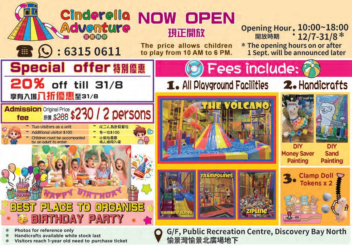 Cinderella Adventure has popped-up at the former EpicLand in DB North Plaza and will be in place through August 31 – longer if we’re lucky. Guests get to enjoy all the play centre facilities plus handicrafting (alpaca-shaped money box painting and sand painting). In addition, each guest receives two tokens to use at the claw machine in the hopes of grabbing a free soft toy. Cinderella Adventure is open from 10am to 6pm daily; children must be accompanied by an adult – entry is HK$288 for two, HK$100 for each additional visitor. To find out more or make a booking, call 6315 0611.