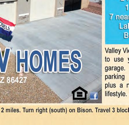 BULLHEAD CITY - 2 bd, 2 bath mfg home with garage, double carport, RV/ motorhome parking w/hookups! Large corner lot with no HOA. Workshop and add-on family room. Close to schools , shopping, restaurants and the cool crisp waters of the Colorado River. Minutes to the nightlife of Laughlin, NV. #015540 $165,000