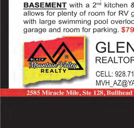 3 bd, 2 bath in Bullhead. Fully fenced lot. RV parking with hookups and 30 amp service. #014835 $99,000