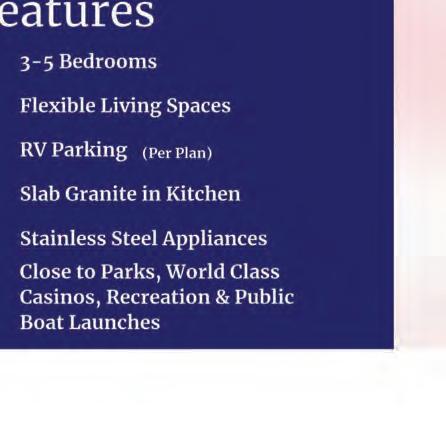 stove, microwave and refrigerator stays. Ceiling fans throughout. Master suite is large and has a slider to the backyard. Master bath has dual sinks and walk in shower. Entire home is wired for surround sound (even the garage). Large lot with fenced RV parking- 20’ x 60’. Full RV hookup includes 30 AMP electrical, soft water hose bib and sewer dump. Gated community off the Parkway minutes from the River, Lake & Casinos. MLS #013596 $325,000