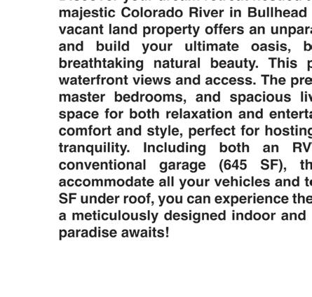 Amazing luxury riverfront home w every extra to be found. Gunite infnity play pool and spa overlooking the Colorado River. Covered patio. Stairs that go down to a 655 sq ft river toy garage with launch ramp and storage garage. Regular garage has 1800 sq ft with an 12 ft RV high garage door and fts 4 cars thru the two 7 ft garage doors,heated and cooled with 1/2 bath and sink. Climate controlled garage! Room to park the motor home or boat outside. Home is selling furnished, less personal items. #014838