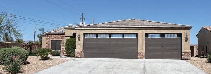 RV garage for your RV, desert and lake/river toys! Only 1.5 years old, this 2 bd, 2 bath with office nook is in pristine condition. The perfect design, with privacy in mind. Spacious Master bedroom with door to rear, covered patio and 8’x10’ closet! #017341 $397,000