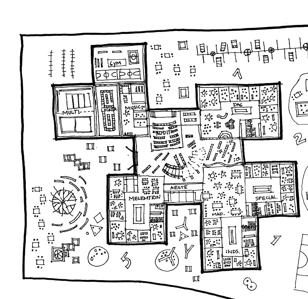 Figure 1.2 Shenoy, Rohan. Conceptual sketch of a school in Greenland (2018) June 21, 2019. Drawing.